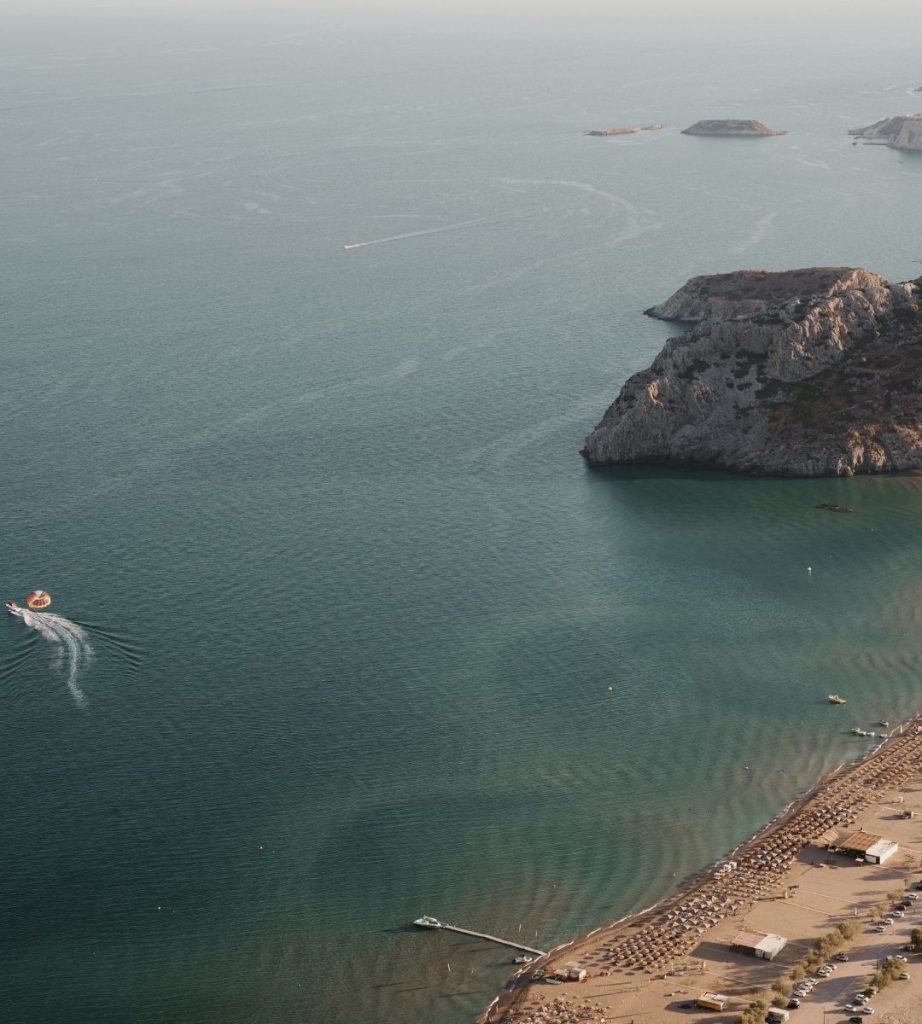 Just steps from Lymberia Hotel, Faliraki Beach is one of Rhodes’ longest and most popular beaches. Its golden sands and crystal-clear waters make it ideal for swimming, sunbathing, and a variety of water sports.